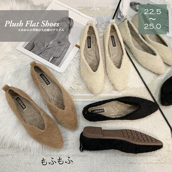 綿毛 ぺたんこ靴 もこもこ 温かい 大人 通勤 無地 可愛い ファー フラットシューズ 歩きやすい シングルシューズ 歩きやすい モフモフ