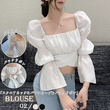 バックリボン ブラウス スクエアネック 送料無料 即日発送