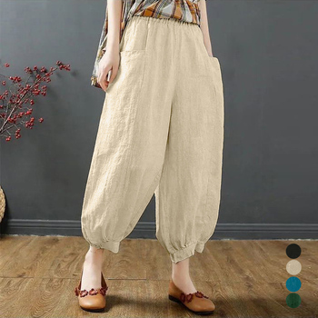 リネンパンツ ウエストゴム 着やせ パンツ ゆったり ポケット付き 九分丈パンツ カジュアル クロップドパンツ無地 ボトムス お洒落 綿麻パンツ 体型カバーパンツ