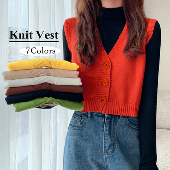 コンパクトベスト レディース ニット 秋冬 ノースリーブ ボタン 重ね着 カジュアルショート丈トップス セーター 通勤通学 レイヤード風 人気