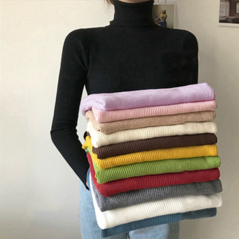体のラインをきれいに魅せ、女性らしさを際立せるタートルネックリブニットトップス
