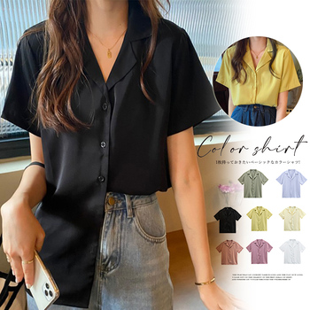 カラー開襟シャツ レディース