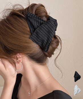 ドット柄 フリルリボン ヘアクリップ上品