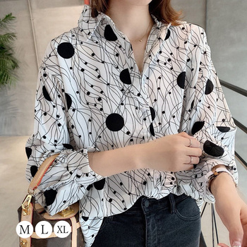 ブラウス 柄シャツ レトロ レディース おしゃれ 幾何学プリ