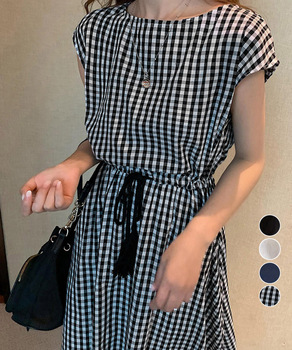 ワンピース リネンワンピース レディース ウエストゴム チェ
