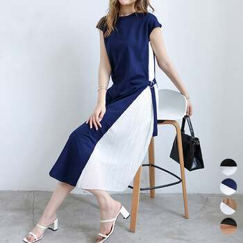 ワンピース サイドプリーツ ロング 夏