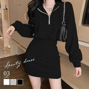 全3色 タイトワンピース ミニワンピース ショート丈 フロントジップ ハイウエスト セクシー おしゃれ カジュアルトレーナーワンピ ワンピース 春秋冬