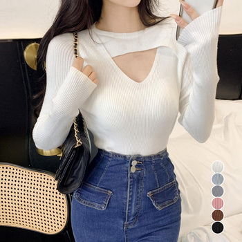 ニットセーター レディース 胸見せ インナーニット カジュアル 着やせ ニットウェア セクシー ニットソー プルオーバー重ね着無地インナー 着回しリブニット 胸開き ニットソー