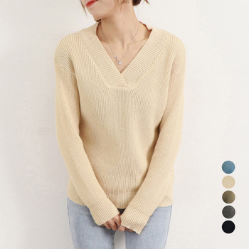 胸元の開きでほんのりセクシーな雰囲気のニットトップス