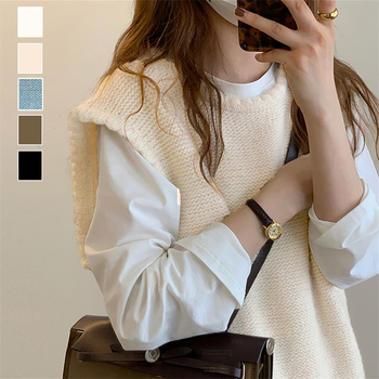 ニットトップス 無地 編み 柔らかい 着やせ ノースリーブ お洒落 カジュアル ベーシック3色 風ニットセーター 重ね着ニット 秋冬