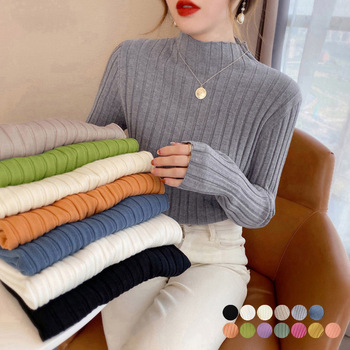 リブニットトップス プチハイネック
