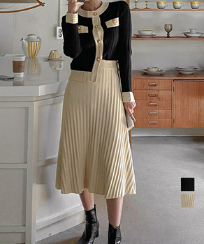 きちんと感と女性らしいやわらかな雰囲気を演出してくれるニットセットアップです