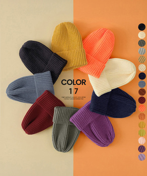 リブニット帽秋冬 シンプルニットビーニー