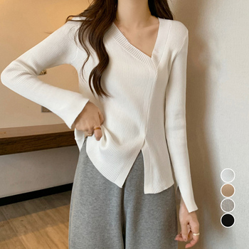 フロントの斜め前にスリットがアクセントを効かせたリブニットトップス