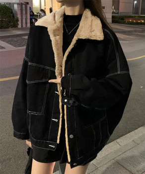 裏ファーデニムジャケットステッチブルゾン ブラック