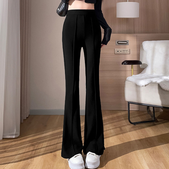ハイウエスト ストレッチパンツ きれいめ ペンシルパンツ センターシーム 美脚パンツ バッグゴム リラックスパンツ春夏秋細見えパンツ 脚長 着やせボトムス女性 無地ロングパンツ黒