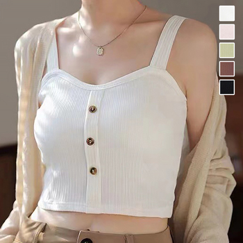 ブラキャミ ブラトップ トップス へそ出しキャミ ボタン セクシー 肌着 無地 カジュアル 胸元 大人 おしゃれインナートップス ショート丈トップス 見せインナー 夏服