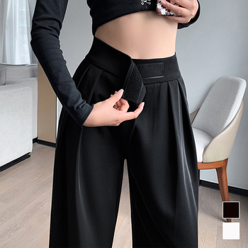 おしゃれ ハイウエスト タックパンツ マジックテープ カジュアル ロングパンツ 脚長ボトムス 春夏秋 スーツパンツ 薄手イージーパンツ無地 体型カバーゆったり 美脚パンツ 着回し