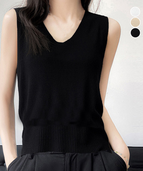 Vネックデザインで首回りを綺麗に魅せられるニットタンクトップ