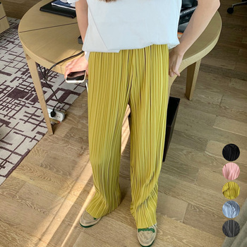 柄 プリーツワイドパンツ 夏レディース