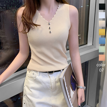 サマーニット ノースリーブ Vネック リブ編み