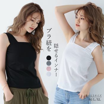 適度に広く開いた胸元と背中、カジュアルに着こなせるタンクトップ。