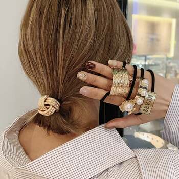 選べる5タイプ 髪飾り ゴールド パール 通勤通学 シュシュ プチプラ小物 誕生日プレゼント ヘアアレンジグッズ 髪留めヘアゴム かわいい 簡単まとめ髪 大人 スタイル