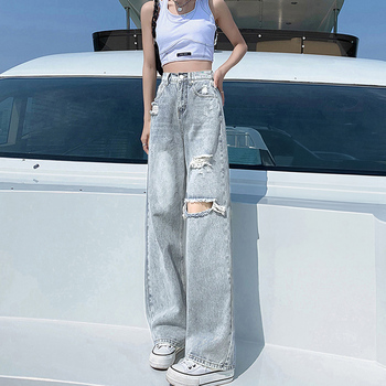 ダメージデニムパンツハイウエストジーパン