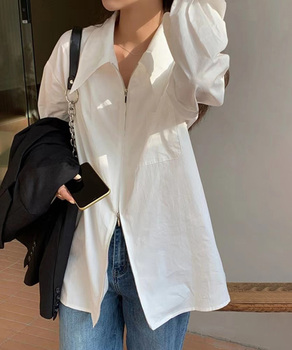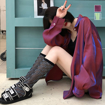 ブラウス サテン ロングシャツ 光沢 トップス 長袖 カーデ