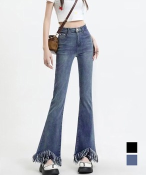 美脚を引き立てる魅力的な裾フリンジデニムフレアパンツ