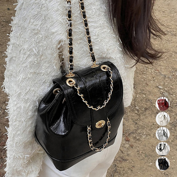 チェーンショルダーがトレンド感満載で大人可愛いフェイクレザー素材のミニリュック