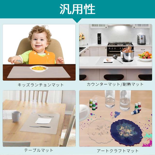 ご自宅、キッチン、オフィス、教室、アウトドア、赤ちゃん、ペットなど、さまざまなシーンに最適で、カウンタートップマット、テーブルマット、プレースマット、耐熱マット、クラフトマット、ペットの餌やりマット、赤ちゃん用マットとしても使用できます。