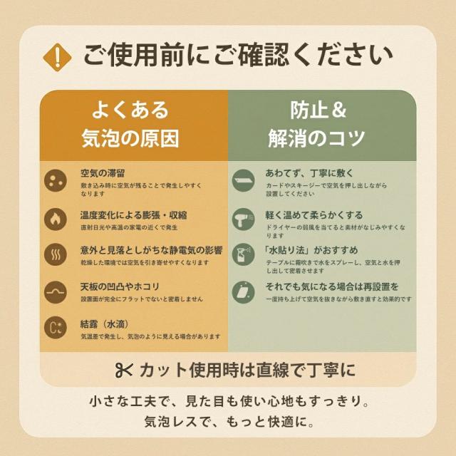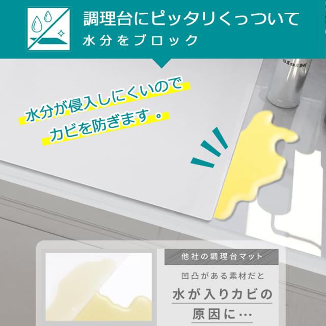 マットと調理台の間に水分が入ってしまった場合は放置せず、拭き取ってください。水分を放置されますと接地面にカビが発生する可能性もございます。