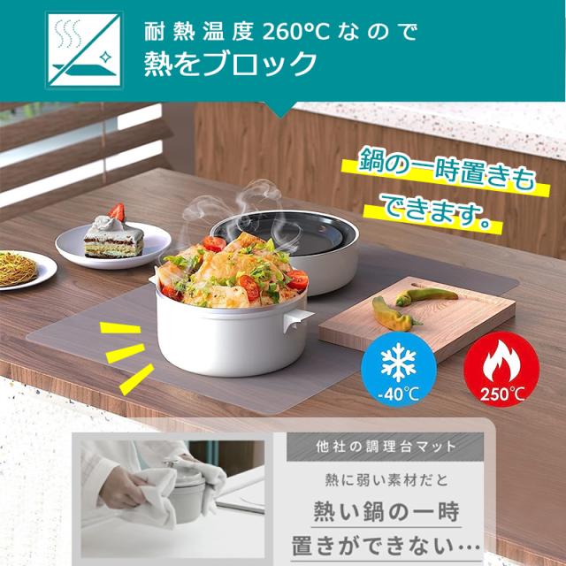 耐熱と耐冷性も十分あるので安心です。断熱性が高く、調理中に鍋やフライパンを熱さを気にせずに置けるので、とても便利です。滑りにくく、どこに敷いても食器の滑り止めとして使えます。作業台の上に敷いて、工具やパーツの滑り止めとしても重宝しています。