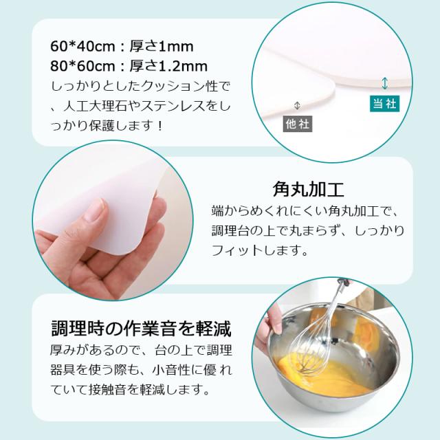 シリコンマット キッチン 調理台保護マット 大判 80×60cm 60×40cm 耐熱260°C キズ防止 汚れ防止 シンク マット 保護マット 調理用 キッチンマット 吸音 拭ける 丸洗い可