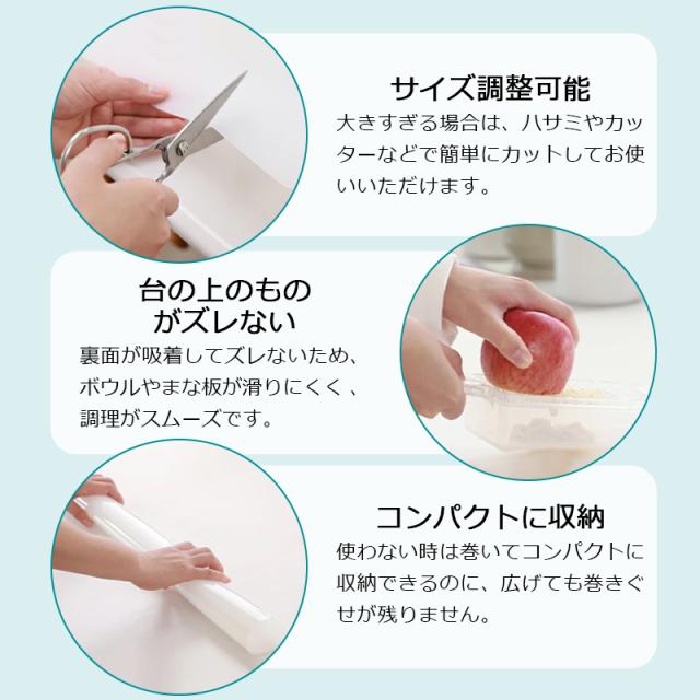 調理台やカウンター、テーブルをキズや汚れからガードし、こぼしてしまってもサッと拭き取れるのでお手入れが簡単です。シリコン素材なので、汚れも簡単に拭き取れます。お手入れがとても簡単で、汚れてもサッと洗えるので清潔にご利用いただけます。柔軟性があり、洗濯もしやすく、洗って繰り返し使えます。食器洗い機でも安全に使用できます。