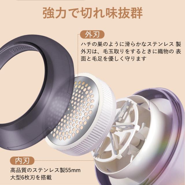 毛玉取り器 電動 毛玉取り 6枚刃 USB 充電式 2段階モード LED残量表示 大容量ボックス 安全装置 生地を傷めない コードレス 日本語説明書 一年保証 PSE認証