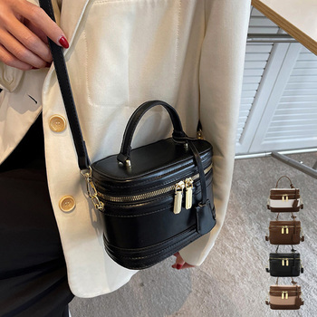 レトロ ミニショルダー 大人可愛いハンドバッグ 小さめ手提げバッグ 2WAY ファスナー バケツバッグ PUレザーかばんおしゃれミニバッグ スマホポシェット黒 合皮カバン マチ広