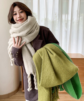 ワイドフリンジマフラー レディース カシミヤタッチストール秋冬 ウール風ショール 無地暖かいふわふわ ニットマフラー防寒マフラー女厚手 太タッセルマフラー かわいい膝掛け人気