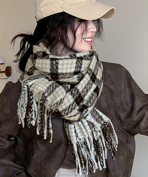 大人の雰囲気、シックなチェック柄の大判マフラー。