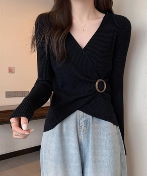 タイトなデザインがセクシーなカシュクール風ニットトップス