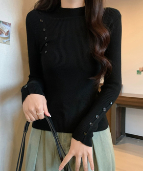 ニットトップス 飾りボタン リブニット 送料無料 即日発送