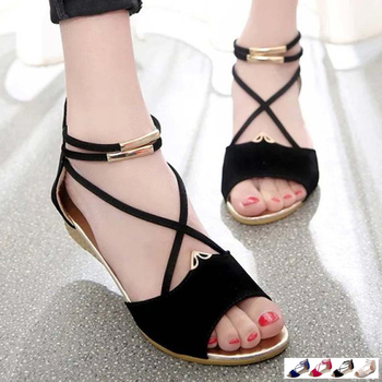 サンダル 歩きやすい ウェッジソール バックファスナー ロー