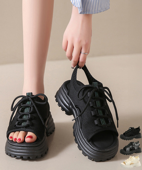 ボリュームソールコンフォートサンダル美脚脚長 歩きやすい カジュアル ニットサンダル 履きやすい靴春夏 軽量くつ 通気性サンダル疲れにくい 蒸れない サンダル スポサン大人女性靴