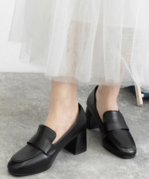 ヒールに慣れていない方でも挑戦しやすいチャンキーヒールパンプス