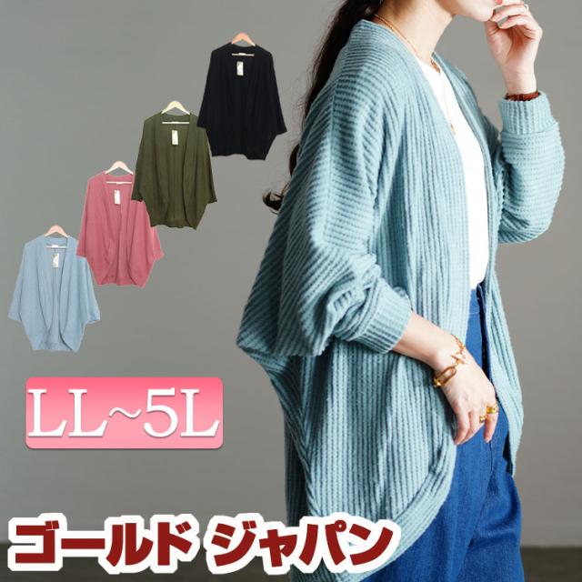 冬新作 大きいサイズ レディース トップス カーディガン ボレロ ワッフルニットドルマンカーディガン カーデ ドルマンカーディガン 長袖 ロング ニット ドルマン ワッフル ストレッチ 秋服 冬服 春服 LL 2L 3L 4L 5L ブラック 黒 カーキ ブルー ピンク ゴールドジャパン
