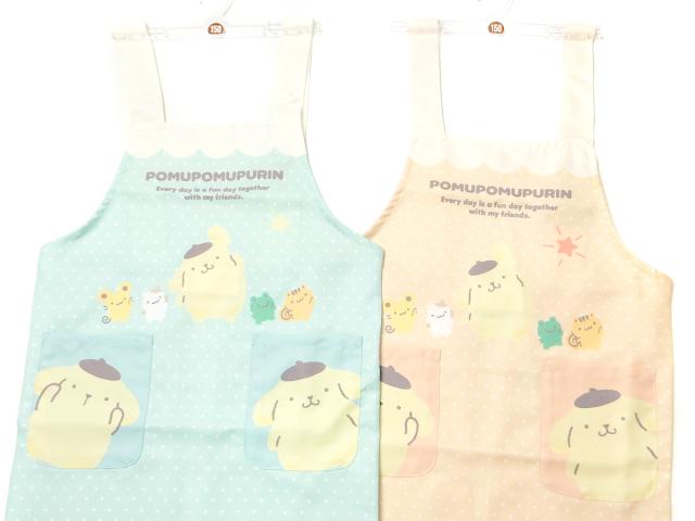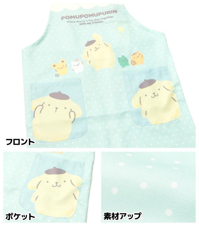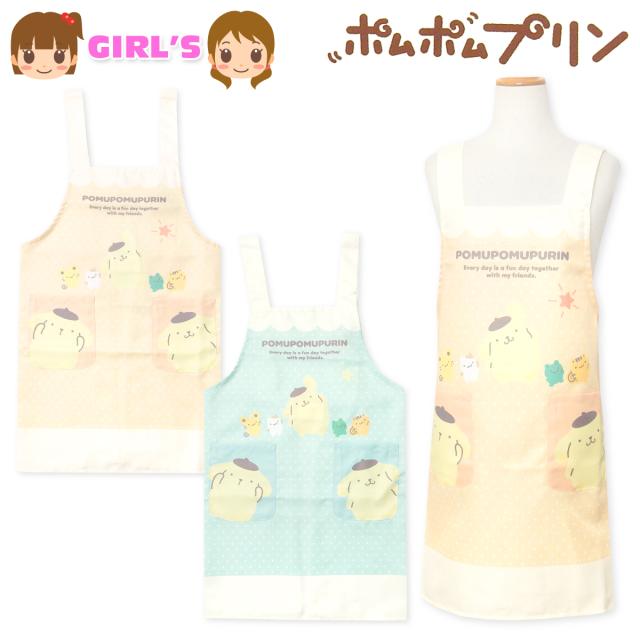【送料無料】女児 キッズ ジュニア H型 エプロン Sanrio サンリオ ポムポムプリン 後ろボタン留め 2段階調節 ポケット付き 子供 女の子 130cm 150cm sl-0504【メール便対応】
