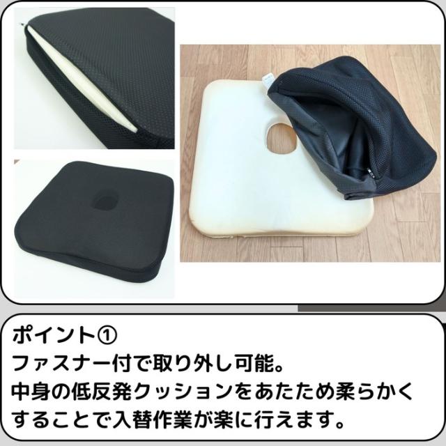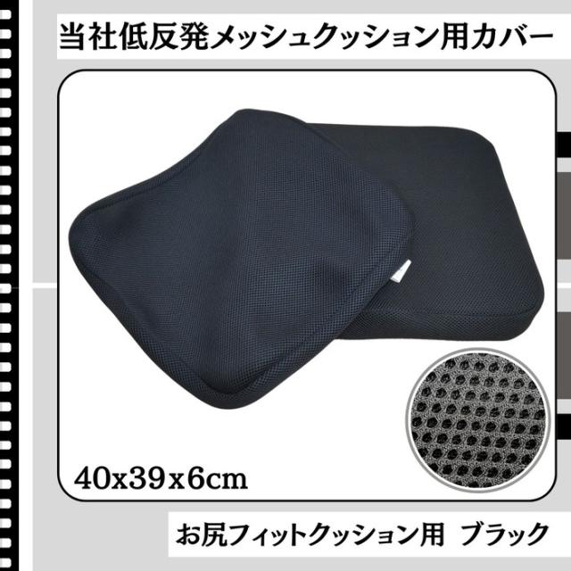 当社低反発ウレタン入りお尻フィットクッション専用カバー メッシュ素材 ブラック色 40x39x7cm 取り換え用洗えるクッションカバー