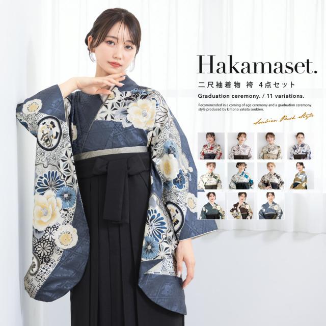 袴セット 卒業式 レディース 女の子 ジュニア 子供 4点セット 着物セット 茶 緑 青 赤 紺 黒 ピンク 松竹梅 椿 菊 桜 雪輪 花柄 大学卒業式 購入 販売 創美苑 送料無料 身長138から175対応