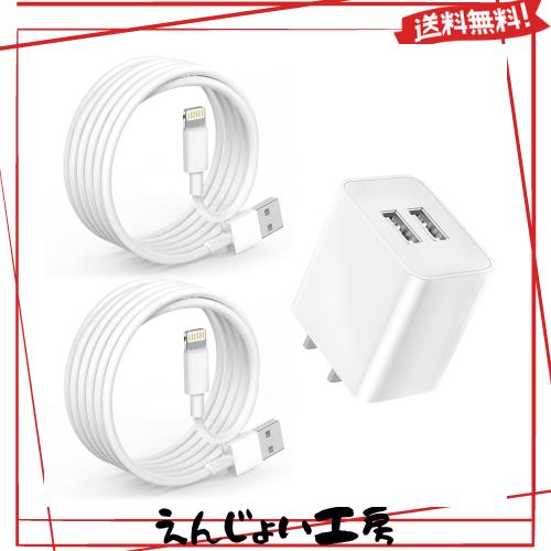 iPhone 充電器 USB 充電器 2ポート 12W ACアダプター 【MFi/PSE認証済み】 2M iPhone 充電ケーブル 2本付き 軽量 コンパクト USB 急速充